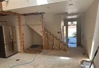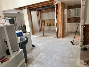 To bring this vision to life, we performed a full interior demolition, stripping everything down to the sheetrock walls. This included removing and repositioning walls to create an entirely new layout tailored to the client’s needs.